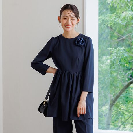 少しハイウエストで切り替えたペプラムはスタイルアップ効果も期待できます。