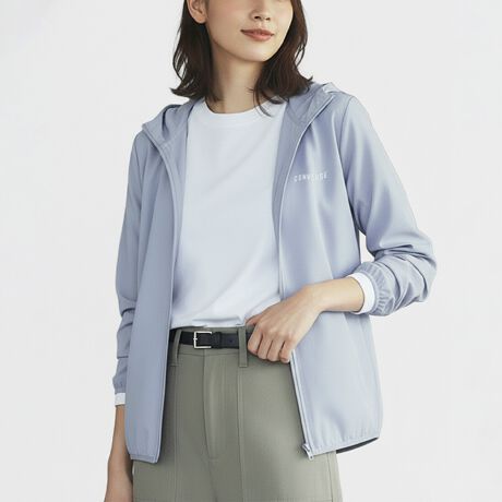 機能性を活かして、アウトドアやウォーキングなどのアクティブシーンにもおすすめの万能パーカーです。