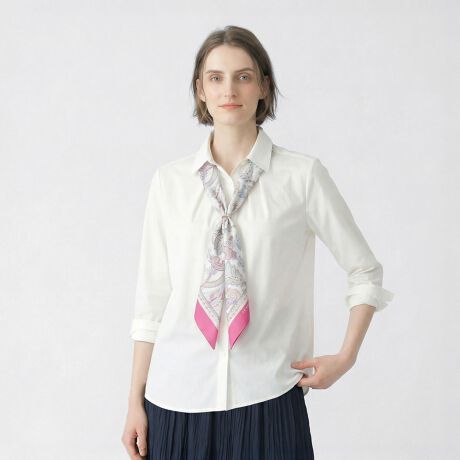 [型番:72263170451]ウィークデイに活躍必須のシンプルなブラウス。身頃と袖口にタックを施して、立体感のある優雅な表情に。一枚でもアウターを加えても着こなしやすいシルエットも魅力です。※商品画像はサンプルを使用しているため、実際の商品と色味などの仕様が異なる場合がございます。予めご了承ください。model:T.167着用サイズ:38