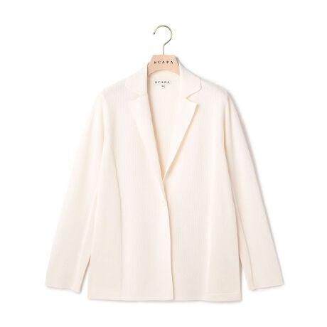 [型番:72263280431]風通し良く着られる綿混ニット素材のジャケット。ゆとりのあるシルエットやワンボタンで、気負わずラフに着こなせます。脇に切り替えが入っており、ボディラインをスマートに演出できるのも心憎いポイント。※商品画像はサンプルを使用しているため、実際の商品と色味などの仕様が異なる場合がございます。予めご了承ください。model:T.167着用サイズ:38