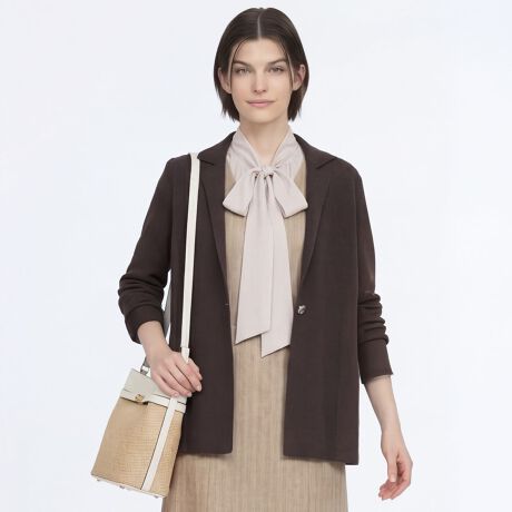 [型番:72263280431]風通し良く着られる綿混ニット素材のジャケット。ゆとりのあるシルエットやワンボタンで、気負わずラフに着こなせます。脇に切り替えが入っており、ボディラインをスマートに演出できるのも心憎いポイント。※商品画像はサンプルを使用しているため、実際の商品と色味などの仕様が異なる場合がございます。予めご了承ください。model:T.167着用サイズ:38
