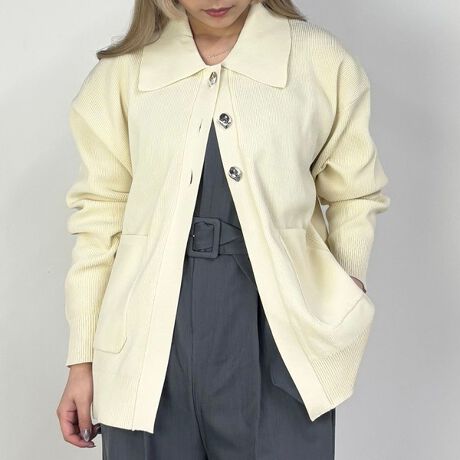 大き目なメタル釦が存在感ある春にぴったりなカーディガンが新登場!
