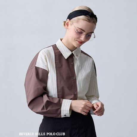 さわやかなストライプのブロード生地にクラシカルなBHPCロゴをあしらい、春のカジュアルスタイルの主役級アイテムに。
