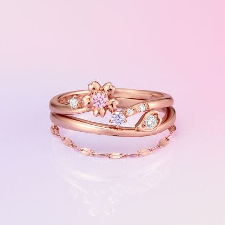 花びらが1枚添えられたリングは、動くたびに揺れるペタルチェーンがアクセントになる仕上がりに。