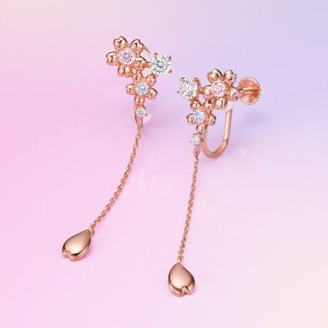 桜の5枚花が寄り添い合うイヤリング。