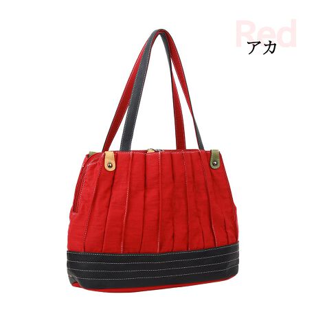 ピンタックのモチーフで持ち手,手元,引き手もカラフルな合皮使いでお洒落のトートハンドバッグ♪