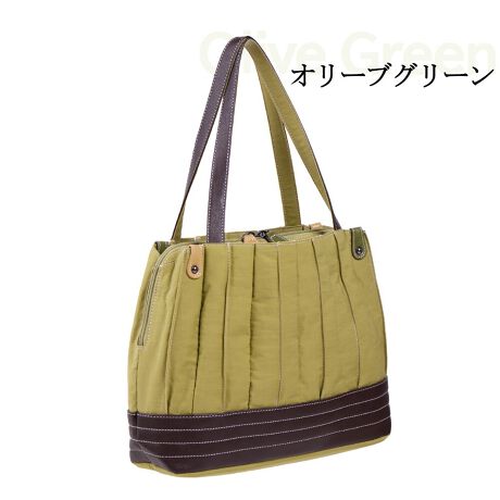 ピンタックのモチーフで持ち手,手元,引き手もカラフルな合皮使いでお洒落のトートハンドバッグ♪