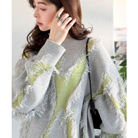 一枚で存在感を放つフリンジ配色オーバーニット。