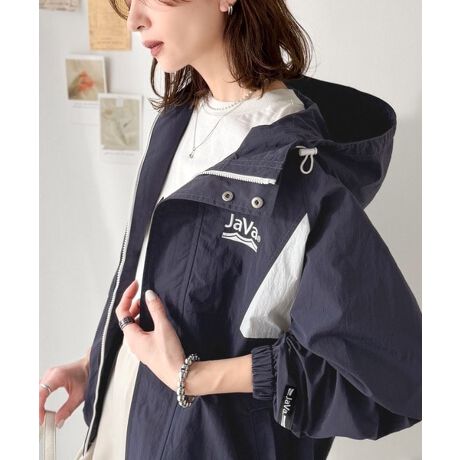 サイド配色が映える、大人の軽やかナイロンフーディ♪