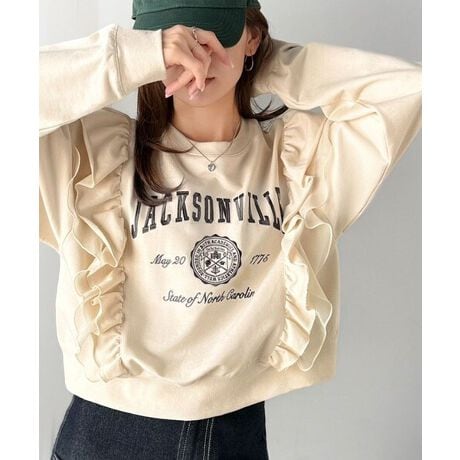 カジュアルなのにフェミニン。ダブルフリルが魅力の柔らかなスウェットトップス。