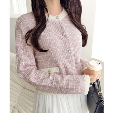 ツイード見えのニット編地が可愛らしい、主役級カーディガン♪