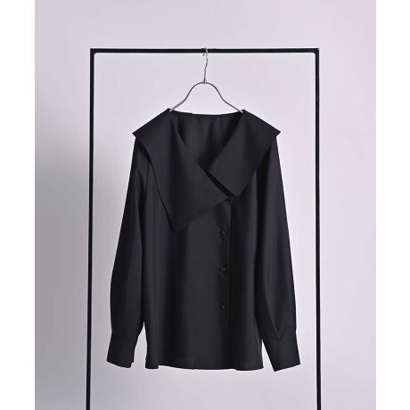 アシンメトリーに配したビッグカラーが視線を引き寄せる、存在感のあるブラウス。