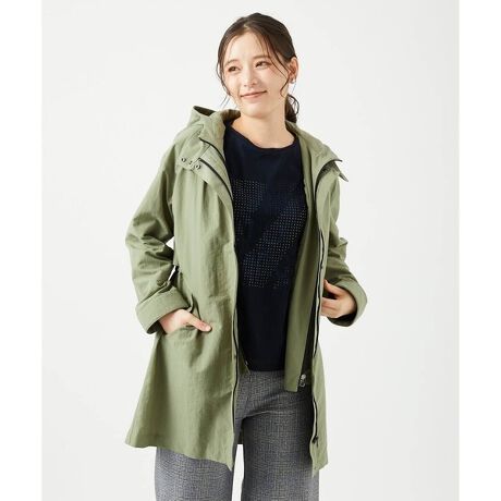 天然素材のような自然な表情とハリ感が上品で動きやすさも抜群です。ライナーベストの取り外しができるので、季節や気温に合わせて自由な着こなしが楽しめます。フードベストは、春や秋は軽く羽織るだけでもおしゃれに決まります。コート本体は裾が少し広がるシルエットで、ウエストのコードで調整すれば、すっきりとしたラインやふんわりした印象など、気分に合わせて変えられるのもポイントです。着心地も良く、1着で春先から冬まで長く活躍する便利なアウターです。