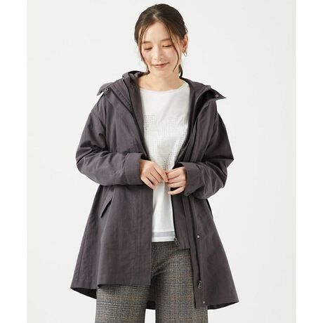 天然素材のような自然な表情とハリ感が上品で動きやすさも抜群です。ライナーベストの取り外しができるので、季節や気温に合わせて自由な着こなしが楽しめます。フードベストは、春や秋は軽く羽織るだけでもおしゃれに決まります。コート本体は裾が少し広がるシルエットで、ウエストのコードで調整すれば、すっきりとしたラインやふんわりした印象など、気分に合わせて変えられるのもポイントです。着心地も良く、1着で春先から冬まで長く活躍する便利なアウターです。