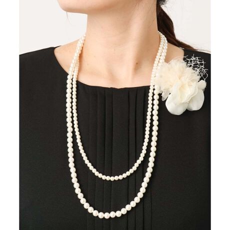 [型番:OZ2CD01054]セレモニーシーンに欠かせないセットアイテム。コサージュは光沢感のある生地やチュールで華やかに仕上げ、パールパーツやビジューでさりげない輝きもプラス。裏側はピン&クリップタイプなのでお好みでアレンジして頂けます。クラシカルなネックレスは大きさの異なるパールを2連デザインで仕上げ、顔周りを上品に演出。コサージュとネックレス、それぞれの組み合わせを楽しめるお得感たっぷりのひと品です。