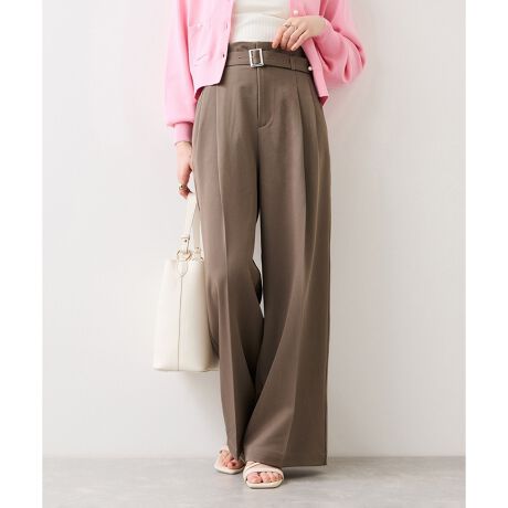 トップスをウエストインした時も決まりやすく、ジャケットシーンのあわせとしても大活躍。裾はそこまで広くないワイドシルエットなので、着用シーンも幅広いです。共地のベルト付きできちんと感もあり、ウエスト部分は後ろのサイドにゴムが入りスッキリ感と着心地を両立。