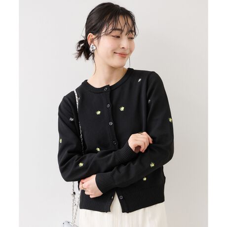 ベーシックなクルーネックに、小花刺しゅうを散りばめた華やかなデザイン。甘くなりすぎないバランスに仕上げており、大人でも取り入れやすい1枚です。