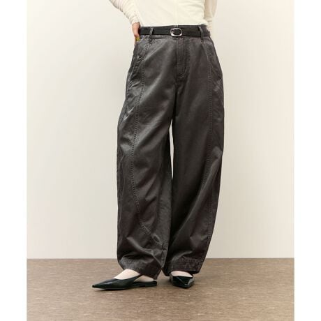 卵のようなシルエットのゆったりとしたパンツ。