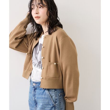 ・総針編みのニットカーディガン