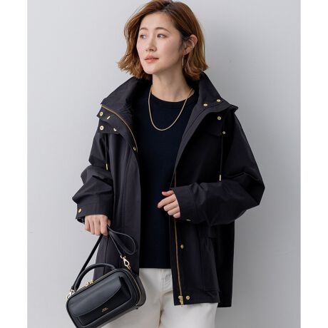 2WAY仕様のフードのついたデザインブルゾン。大き目のポケットをアクセントにすることで、定番アイテムにトレンドを取り入れてアップグレードしました。ネックディテールがやや高めのデザインで、フロントは釦で開け閉めできるのもポイントです。ウエストはドロスト仕様にしているので、絞ることでスタイリングに合わせたシルエットの変化をお楽しみいただけます。フードはファスナーで取り外しが可能で、その日の天気やインナー次第で着脱を選んでも◎。カラーニットやデニムスカートと合わせていただくことでカジュアルすぎず、こなれた印象に仕上がるのでおすすめです。カラーは、明るく晴れやかなベージュ(#002)、上品で暖かみのあるキャメル(#034)、毎日頼れる洗練されたネイビー(#075)の3色展開です。