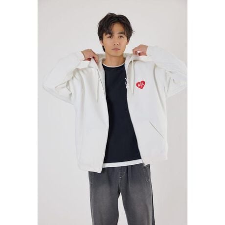 ■ポイント膨らみを持たせた表面感のある、裏毛とは違った雰囲気が楽しめるゆったりシルエットのジップパーカーです。■ディテール厚みのある裏起毛素材を使用。シンプルながらもキャッチーなハートブレイク刺繍が、トレンド感をプラスしています。■スタイリングカジュアル、ストリート、スポーツ系など、スタイルを問わず活躍。ペアやカップルコーディネートにも最適で、家族でシェアすることもできる万能アイテムです。■生地表面変化系のボンディング仕様で、裏面は起毛を起こし、保温性も優れた素材。■透け感:なし■裏 地:なし■伸縮性:ややあり■光沢感:ややあり※お取り扱い上のご注意使用に伴い、裏側の起毛部分には毛玉や毛羽が発生する場合があります。[注意事項]※画像の商品はサンプルです。実際の商品と仕様、加工が若干異なる場合があります。※画像の商品は光の照射や角度、お使いのモニター環境により、実物と色味が異なる場合がございます。※着用、お取り扱いの際は、アテンションタグをご確認ください。