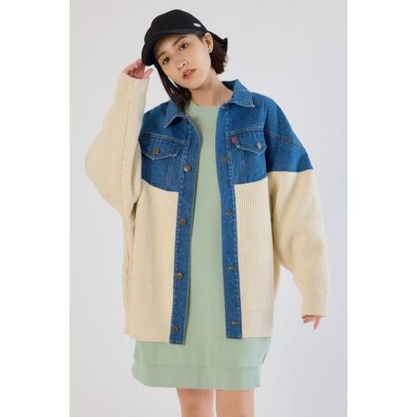 ■ポイントデニムジャケットにニットをドッキングした、遊び心あるアウターです。ゆったりルーズなシルエットで重ね着もしやすく、季節の変わり目のライトアウターとして活躍します。デニムのカジュアルさと、ニットの柔らかさが絶妙にマッチし、抜け感のあるスタイリングを演出してくれます。■ディテールデニム部分は洗いブリーチとバイオウォッシュをすることで加工感を出しています。■スタイリングデニムのカジュアルさと、ニットの柔らかさが絶妙にマッチし、抜け感のあるスタイリングを演出してくれます。パンツにもスカートにも合わせやすく、デイリーに使いやすい万能アイテムです。■生地デニム部分は半製品で洗いブリーチとバイオウォッシュをすることで加工感を出しています。ニット部分は畦編みにすることでデニムに合った肉厚にしています。■透け感:なし■裏 地:なし■伸縮性:ややあり■光沢感:なし※お取り扱い上のご注意デニムは湿った状態で重ねて放置すると色移りの原因となります。ニット部分は頻繁に着用するとピリングの原因となります。[注意事項]※画像の商品はサンプルです。実際の商品と仕様、加工が若干異なる場合があります。※画像の商品は光の照射や角度、お使いのモニター環境により、実物と色味が異なる場合がございます。※着用、お取り扱いの際は、アテンションタグをご確認ください。