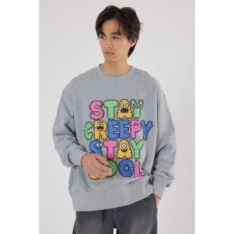 ■ポイントカラフルなモンスターフォントデザインが目をひく、裏毛素材を使用したクルーネックスウェット。■ディテールグラフィックは部分的に発泡プリントで立体感を出しており、これ一枚で主役級になれる仕上がりです。■スタイリングデニムパンツはもちろん、カーゴパンツやワークパンツなどを合わせたストリートスタイルがおすすめです。■生地肉感のある厚手素材。ポリエステルを混紡したヘビーウエイトな素材感、強度が高く着崩れや型崩れしにくい素材。■透け感:なし■裏 地:なし■伸縮性:ややあり■光沢感:なし※お取り扱い上のご注意プリント箇所は着用・洗濯によリ白化、剥離する場合があります。プリント箇所は湿った状態で重ねて放置すると色移りの原因となりますので注意してください。[注意事項]※画像の商品はサンプルです。実際の商品と仕様、加工が若干異なる場合があります。※画像の商品は光の照射や角度、お使いのモニター環境により、実物と色味が異なる場合がございます。※着用、お取り扱いの際は、アテンションタグをご確認ください。