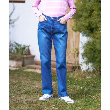 ミディアムブルーの色合いが魅力の、ストレートデニムパンツ。広島県福山市のカイハラデニムを使用したジーンズ。製品洗いを施し、ひげやあたりを加えることで、自然なラフ感を表現しています。 脚のラインをすっきりと見せつつ、ストレッチ性があるので、リラックス感のある穿き心地です。シンプルなデザインは、ブラウスやニット、シャツなど、どんなトップスとも相性が良く、幅広いコーディネートをお楽しみいただけます。 旅先での街歩きから、普段使いのカジュアルスタイルまで、大人のオフシーンを上品に彩るキャラ・オ・クルスらしい一本です。