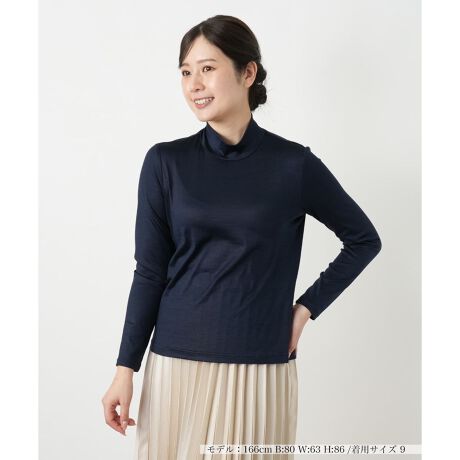 シルクを混紡した上質な素材感が魅力のハイネックカットソーです。シルク特有のなめらかな肌当たりと控えめな光沢が、日常の装いに洗練されたニュアンスを添えます。春先に心地よいやや薄手の質感ながら、優れた伸縮性を備えており、身体に優しくフィットする快適な着心地を実現しています。一枚着としてはもちろん、ジャケットやカーディガンのインナーとしても美しく映え、装いを上品に格上げしてくれる汎用性の高いトップスです。