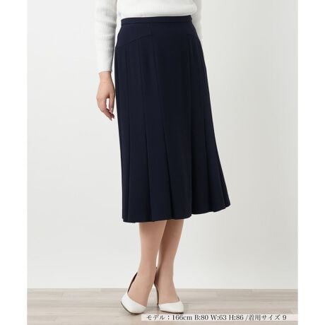 春らしいやや薄手の生地で仕立てた、エレガントな佇まいのミディスカートです。表地と裏地の双方に高い伸縮性を持たせることで、端正なプリーツの美しさと、ストレスフリーな足捌きを両立しました。ウエストは全周ゴム仕様で心地よくフィットし、サイドのホックとファスナーにより着脱もスムーズ。動くたびにしなやかに揺れるプリーツラインが、大人の日常に知的な華やぎと洗練された印象を添える一枚です。