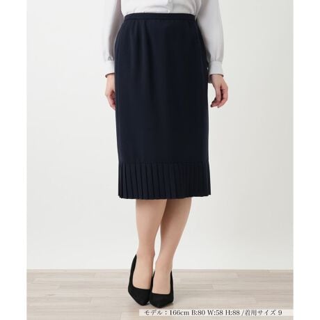 裾に施した繊細なプリーツの切り替えが、ドラマティックな揺れ感を演出するミディ丈スカートです。春の装いにふさわしいやや薄手のさらりとした質感ながら、裏地付きで安心感のある穿き心地を実現しました。ウエストは全周ゴム仕様にすることでリラックスしたフィット感を叶えつつ、サイドホックとファスナー開閉により、腰回りをすっきりと端正に見せてくれます。上品なミディ丈が知的な印象を醸し出し、大人の日常を華やかに彩る一枚です。