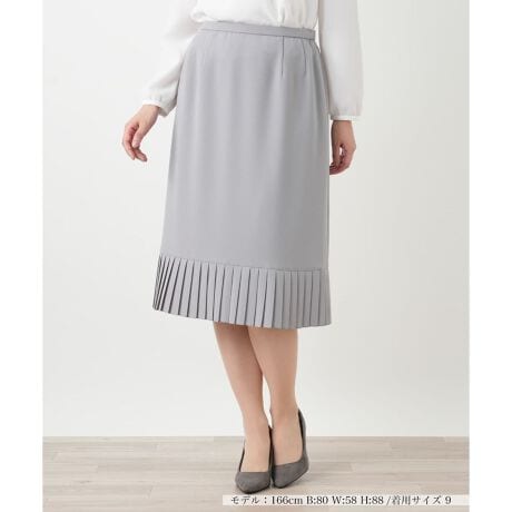 裾に施した繊細なプリーツの切り替えが、ドラマティックな揺れ感を演出するミディ丈スカートです。春の装いにふさわしいやや薄手のさらりとした質感ながら、裏地付きで安心感のある穿き心地を実現しました。ウエストは全周ゴム仕様にすることでリラックスしたフィット感を叶えつつ、サイドホックとファスナー開閉により、腰回りをすっきりと端正に見せてくれます。上品なミディ丈が知的な印象を醸し出し、大人の日常を華やかに彩る一枚です。