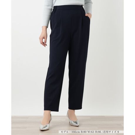 足元に軽やかな抜け感を演出する、アンクル丈のクロップドパンツです。初夏のスタイリングに最適なやや薄手の生地を使用し、涼やかで快適な穿き心地を実現しました。優れた伸縮性を備えた素材に加え、ウエストの後ろ部分をゴム仕様にすることで、端正な見た目とリラックスしたフィット感を両立。センタープレスを施した美しいシルエットがレッグラインをすっきりと整え、実用的なポケットも備えています。オンオフを問わず、洗練された大人のデイリールックに幅広く活躍する一本です。
