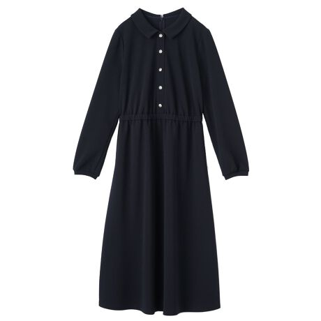 シャツとロングスカートをコーディネートしたような、ドッキングデザインのワンピースです。春らしいやや薄手の生地は伸縮性に優れ、一日中ストレスフリーな着心地を叶えます。フロントのボタンは上品なアクセントを添える飾り仕様とし、着脱は背中のファスナーでスムーズに行える設計に。全周ゴム仕様のウエストが、メリハリのあるシルエットを描きながら快適さをキープ。便利なポケットもレイアウトし、日常のあらゆるシーンに重宝する一着です。