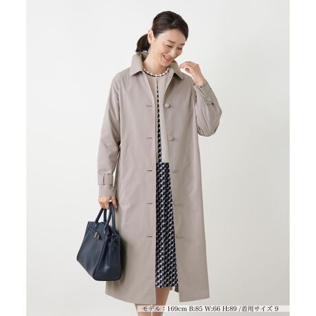 丸みのあるショールカラーが優雅な表情を演出するドレスコート。ソフトでしなやかなタフタ素材を使用し、後ろウエストのギャザーとタックによるバックシャンデザインが印象的です。すっきりとした長め丈で、セレモニーシーンにも映える一着です。