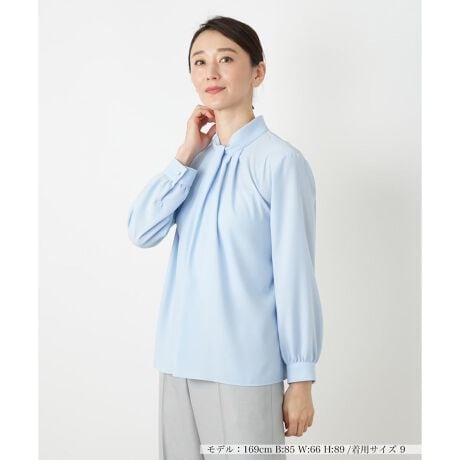 マットな表面感が上品なソフトストレッチジョーゼット素材のブラウス。薄手で柔らかなシルエットが、女性らしい優しさを表現します。着回し力の高いシンプルなデザインながら、ウォッシャブルで実用性も兼ね備えた一枚です。