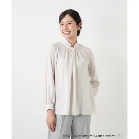 マットな表面感が上品なソフトストレッチジョーゼット素材のブラウス。薄手で柔らかなシルエットが、女性らしい優しさを表現します。着回し力の高いシンプルなデザインながら、ウォッシャブルで実用性も兼ね備えた一枚です。