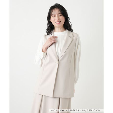 端正なラペルが知的な印象を与える、洗練されたロング丈のラペルドベストです。春の装いに最適なやや薄手の素材を使用しながらも、裏地を配することで、美しいシルエットを保ちつつ安心感のある着心地を実現しました。縦のラインを強調するシャープなフォルムと、腰回りを自然にカバーする絶妙な丈感がスタイルアップを叶えます。フロントのシングルボタンがミニマルなアクセントを添え、シャツやカットソーに重ねるだけでコーディネートをモダンかつ上品にアップデート。