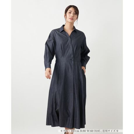 カジュアルなデニム素材を、軽やかさと快適な着心地でエレガントに仕上げたワンピース。特殊な撚糸技術を用いた生地は、驚くほどの軽量感とふっくらとした膨らみ感を実現し、肌触りもソフトです。シワになりにくいのも嬉しいポイント。クラシカルなシャツ襟に、ウエスト周りのカシュクール仕様が立体的なデザイン。後ろウエストはゴム仕様で、ギャザーを寄せた優雅なフレアスカートへと繋がります。