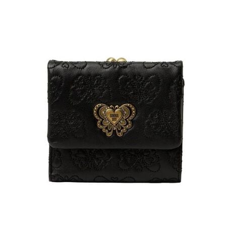 バタフライモチーフの繊細な刺繍と立体的なブローチが目を引くチェイスシリーズは、大人の可愛らしさと上品さを兼ね備えたデザインが魅力で、コーディネートのアクセントとして存在感を放つアイテム。素材にはソフトで軽量な羊革を使用し、しっとりとした手触りと肌なじみの良さで、毎日使ってもストレスを感じにくい快適な使い心地を実現しています。コンパクトながらも必要な小物をしっかり収納できるサイズ感で、通勤やデイリー使いはもちろん、ちょっとしたお出かけやフォーマルなシーンにも対応。内側にはデイジー柄をあしらい、開けた瞬間に華やかな気分を演出するなど、細部までこだわり抜かれた仕様で、使うたびに気分を高めてくれる上質なレザーアイテムです。【メーカーサイズ寸法(実寸)】サイズ:H:9.5/W:11/D:3.5/重さ:170g/札入:2/小銭入れ:1/カードポケット:6/フリーポケット:4