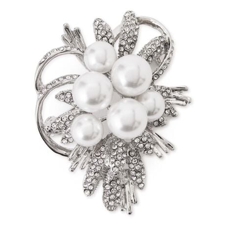 デコラティブなビジューを贅沢にあしらった、気品あふれるブローチです。中央に集めたパール調ビジューの柔らかな光沢と、周囲を彩るガラスの繊細な輝きが相まって、胸元に華やかな存在感を放ちます。台座には真ちゅうを使用しており、細部まで丁寧に作り込まれたエレガントなデザインが魅力。入学式や卒業式などのセレモニーシーンから、日常のジャケットスタイルのアクセントまで幅広く活躍し、装いを上品に格上げしてくれる一品です。