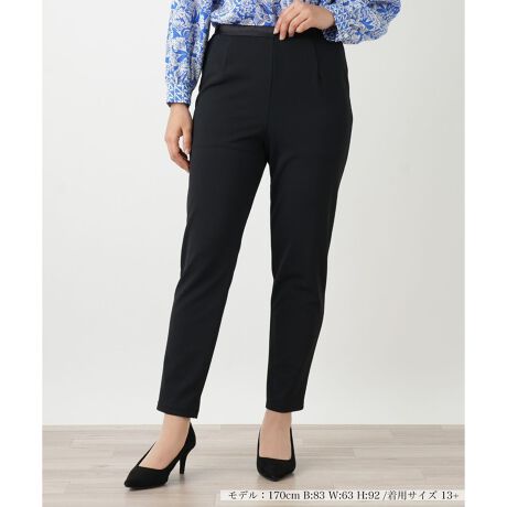 脚のラインをすっきりと美しく見せてくれるスリムパンツ。抜群のストレッチ性で、動きやすさと快適な穿き心地を実現しました。ウエストはゴム仕様なので、長時間の着用でも窮屈感なくお過ごしいただけます。チュニックやワンピースとのレイヤードスタイルにも最適。アクティブな日からリラックスしたい日まで、毎日穿きたくなる一本です。