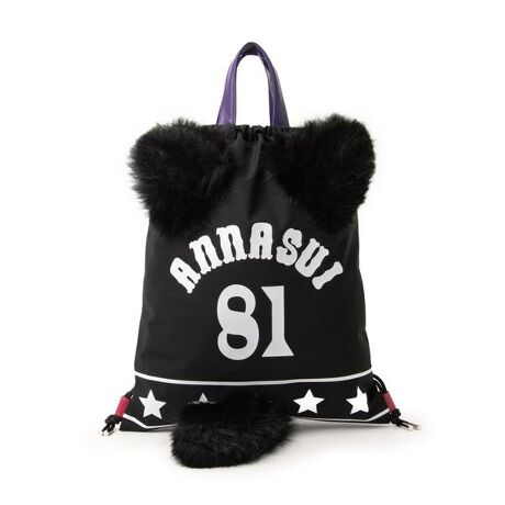 モフモフの猫耳としっぽがひときわ目を惹く、遊び心たっぷりのTITIモチーフのナップサック。背負うとまるで猫のしっぽが生えたかのような立体的なデザインで、持つだけでコーディネートの主役になるインパクトある仕上がりです。軽量で扱いやすいナップサック型は、デイリー使いはもちろん、イベントやフェス、旅行、テーマパークなどにもぴったり。内側には便利なポケットを備え、必要最低限の荷物をすっきり収納できます。ショルダー部分は先端の紐を結ぶことで長さ調整が可能な仕様。ブラックをベースにビビッドな差し色を効かせ、可愛さの中にもANNA SUIらしいエッジをプラスしました。さらに、ブランドを象徴する「81」モチーフは、アナ スイのファーストコレクションが発表された1981年に由来するアイコニックなナンバー。背負うだけで“猫気分”を楽しめる、今注目度の高いANNA SUIならではの個性派バッグです。・A4対応(22×31cm):〇・長財布(10×20cm):〇・ペットボトル横向き(500ml):〇・ペットボトル縦向き(500ml):〇【メーカーサイズ寸法(実寸)】FREE : 重さ:20g, 高さ:42cm, 幅:35cm, 持ち手高さ:10cm, ショルダーストラップの長さ:85cm