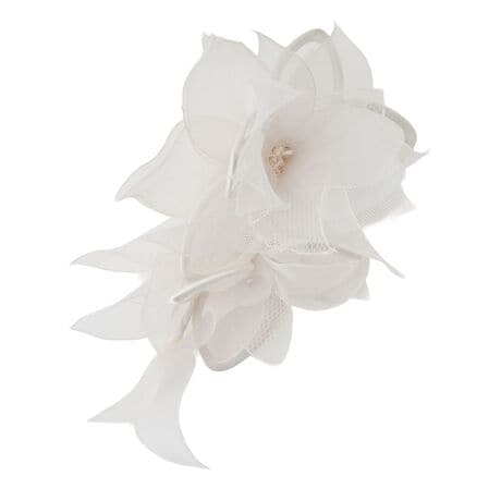 セレモニースーツの胸元を、上品かつ華やかに彩るコサージュ。幾重にも重なった花びらが、お祝いの席にふさわしい優雅な雰囲気を演出します。ジャケットやワンピースに添えるだけで、装いがぐっとフォーマルな印象に。特別な日をより美しく記憶に残すための、大切なアクセサリーです。クリップとピンの両方が付いており、お洋服を傷つけにくいのも嬉しい配慮です。