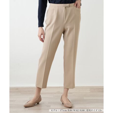 足元に軽やかな抜け感を演出するクロップドパンツ。優れた伸縮性を持つコンフォートストレッチ素材が、動きやすさと快適な履き心地を実現します。すっきりとしたシルエットは、ヒールからフラットシューズまでどんな靴ともバランスが良く、着こなしの幅を広げてくれます。初夏のお出かけスタイルに欠かせない、洗練された印象の一本です。