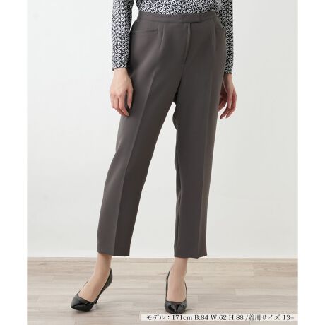 足元に軽やかな抜け感を演出するクロップドパンツ。優れた伸縮性を持つコンフォートストレッチ素材が、動きやすさと快適な履き心地を実現します。すっきりとしたシルエットは、ヒールからフラットシューズまでどんな靴ともバランスが良く、着こなしの幅を広げてくれます。初夏のお出かけスタイルに欠かせない、洗練された印象の一本です。
