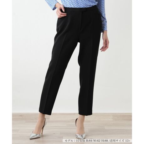 足元に軽やかな抜け感を演出するクロップドパンツ。優れた伸縮性を持つコンフォートストレッチ素材が、動きやすさと快適な履き心地を実現します。すっきりとしたシルエットは、ヒールからフラットシューズまでどんな靴ともバランスが良く、着こなしの幅を広げてくれます。初夏のお出かけスタイルに欠かせない、洗練された印象の一本です。