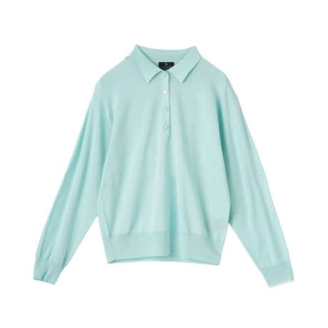 イタリア糸を使用した、ポロシャツタイプの長袖ニットプルオーバー。