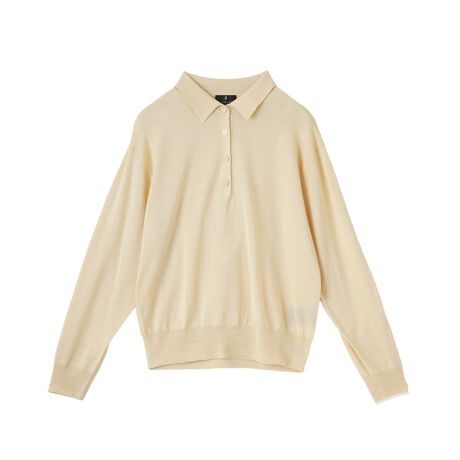 イタリア糸を使用した、ポロシャツタイプの長袖ニットプルオーバー。
