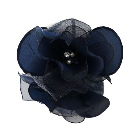 重ね合わせたフラワーモチーフが生み出す、立体感が魅力的なコサージュです。シルクやキュプラを贅沢に使用した繊細な花びらのレイヤードが柔らかな陰影を描き、装いに奥行きのある気品を添えます。中央に配されたビジューが胸元で美しく煌めき、特別な日の装いを一層華やかに演出。フォーマルなセレモニーはもちろん、ジャケットにブローチとして添えるだけで、日常のスタイルも洗練された印象に仕上げます。